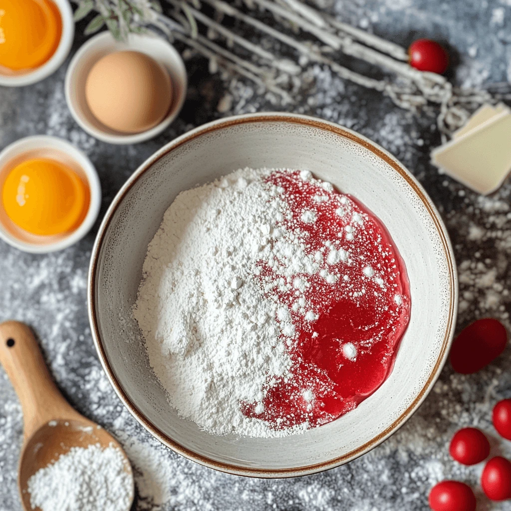 Mix in the red food coloring until the dough turns a vibrant red color. - Combine Wet and Dry Ingredients 🍪