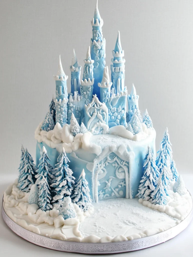 3. Frozen-Themed Elsa Ice Castle disney princess Cake ❄️